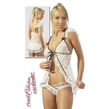 Babydoll & σλιπάκι Εκρού-Μαύρη Δαντέλα S
